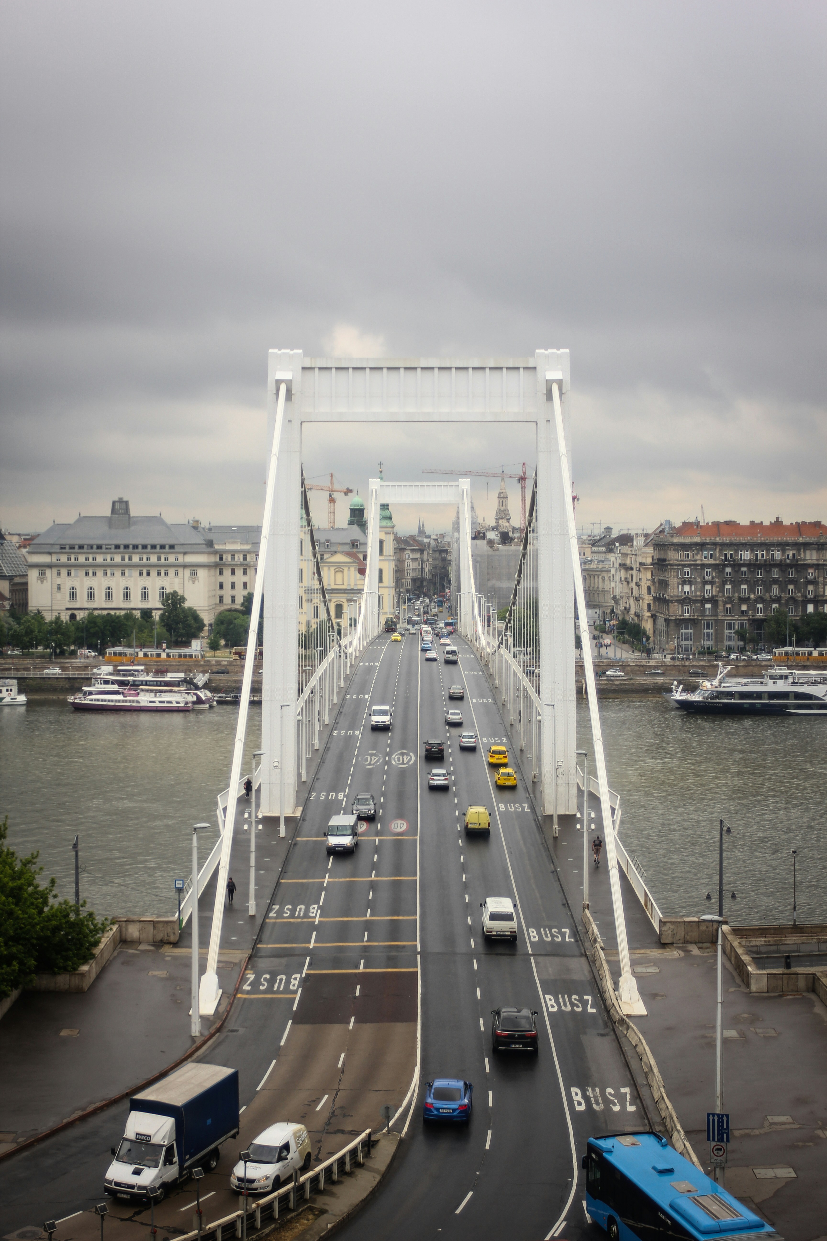 A Ponte Erzsébet, localizada em Budapeste, Hungria, rapidamente se tornou um dos locais mais atraentes para os visitantes. Cruzando o rio Danúbio e conectando os lados Buda e Peste da cidade, é um ótimo local para ver paisagens urbanas deslumbrantes. Concluída em 1937, a ponte é mais impressionante quando iluminada à noite, criando um belo reflexo no Danúbio abaixo. No lado Peste da ponte, há alguns mirantes para uma melhor visualização da ponte. Os viajantes adoram os passeios pitorescos ao longo da ponte e as ótimas oportunidades para fotos.