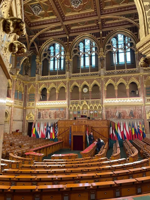 O Edifício do Parlamento Húngaro, situado nas margens do Rio Danúbio em Budapeste, é um exemplo impressionante da arquitetura neogótica e um dos maiores edifícios parlamentares do mundo. Concluído em 1904, sua fachada marcante apresenta detalhes intrincados, arcos pontiagudos e majestosas torres, enquanto o interior exibe salas opulentas adornadas com rico dourado e artefatos históricos. Os visitantes podem admirar a Santa Coroa da Hungria dentro da cúpula central. Visitas guiadas oferecem uma visão sobre suas funções políticas e esplendor arquitetônico. As atrações próximas incluem os Sapatos no Danúbio, um comovente memorial às vítimas do Holocausto, e o encantador distrito do Castelo de Buda do outro lado do rio.