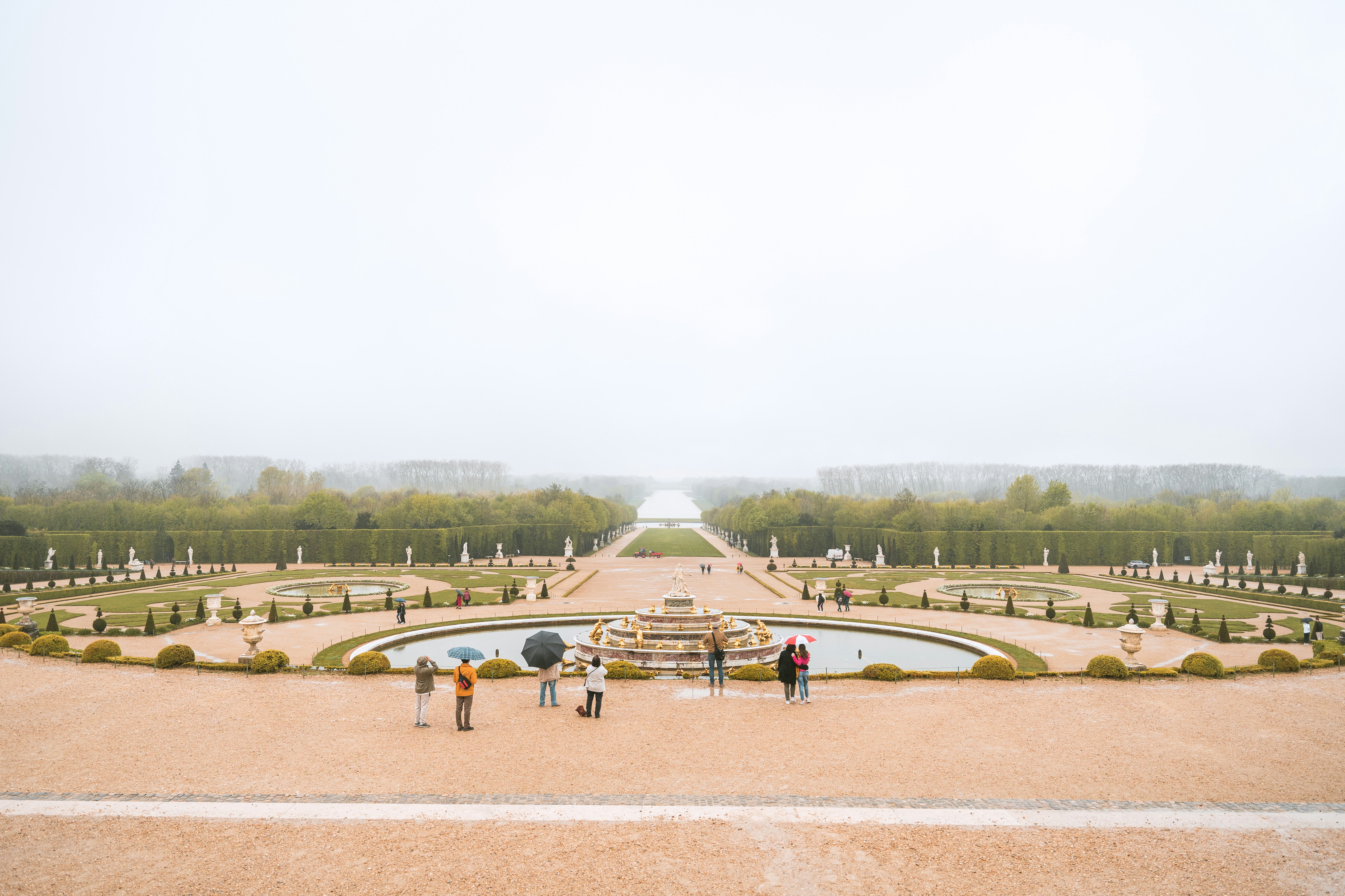 Latona's Pool and Parterre & Latona Stairs é uma parte deslumbrante da Cena da Grande Fonte de Versalhes, uma atração turística na França. O lago tem a forma de uma estrela, cercado por árvores baixas e ladeado por canteiros de flores. É ladeado por uma série de parterres, terraços e degraus brancos. Diz-se que é inspirado na história de Latona, uma filha dos Titãs, que se recusou a deixar seu destino ser decidido por aqueles que eram considerados indignos. Esta área de Versalhes é mais bonita durante os meses de verão, quando as sebes estão em plena floração e flores de cores vivas preenchem a paisagem. Caminhar pelos terrenos desta grandeza levará você de volta no tempo ao reino do Rei Luís XIV com toda a sua opulência e história.