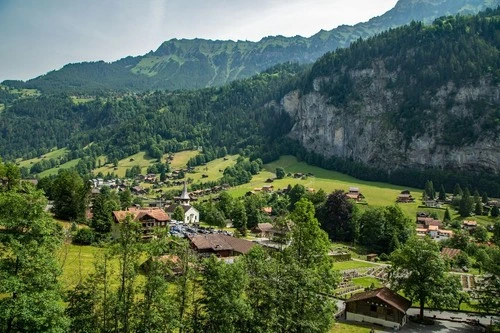 Lauterbrunnen é um vale alpino pitoresco situado nos Alpes Berneses, na Suíça. Ele é cercado por montanhas íngremes e irregulares e pontilhado por 72 cachoeiras estrondosas que criam uma visão impressionante, especialmente durante a primavera e o verão. A mais famosa delas é a Cachoeira Staubbach, uma notável cortina de água em cascata de 900 metros. No meio, você pode avistar a vila de Lauterbrunnen, coberta por um manto de campos verdes e lar do brilhantemente azul, o rio glacial Liitschine.