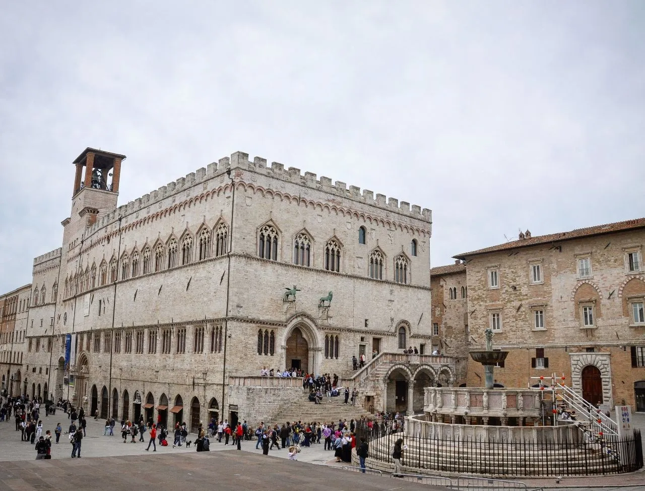 A Piazza IV Novembre é um dos pontos turísticos mais famosos de Perugia e está localizada perto da Cidade Velha. Esta praça histórica foi construída no século XV e é um destino perfeito para explorar a cultura tradicional da Úmbria. É uma praça agradavelmente espaçosa, cercada por edifícios de tijolos, o que confere uma atmosfera rústica e pitoresca. A fachada sul do Palazzo dei Priori (a Prefeitura de Perugia) desponta como o ponto central da praça, com sua loggia aberta e fonte. Enquanto você passeia pela Piazza IV Novembre, pode dedicar um tempo para admirar as estátuas, incluindo um monumento ao Cardeal Ginnasio e os quatro leões de bronze da Fonte Barberini, que foram esculpidos pelo famoso escultor Antonio Lupi no final do século XVI. Além das obras de arte e arquitetura, a praça também oferece uma vista espetacular do vale abaixo e das colinas da Úmbria.