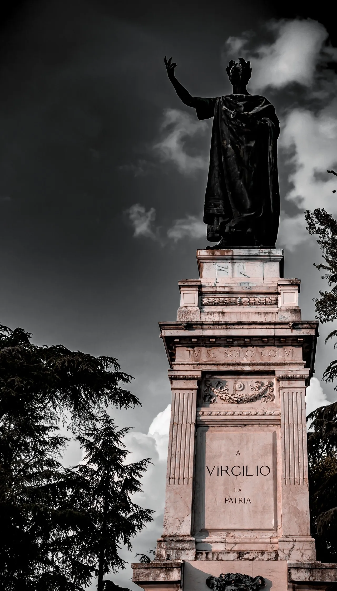 Памятник Вергилию в Мантове, Италия, – дань уважения великому римскому поэту, родившемуся неподалёку от Мантовы в 70 году до н.э. Он расположен в Пьяцца Вергилиана, спокойном парке, предоставляющем убежище в городе. Воздвигнутая в конце XIX века, статуя изображает Вергилия в задумчивой позе, символизируя его глубокое влияние на литературу благодаря таким произведениям, как «Энеида».