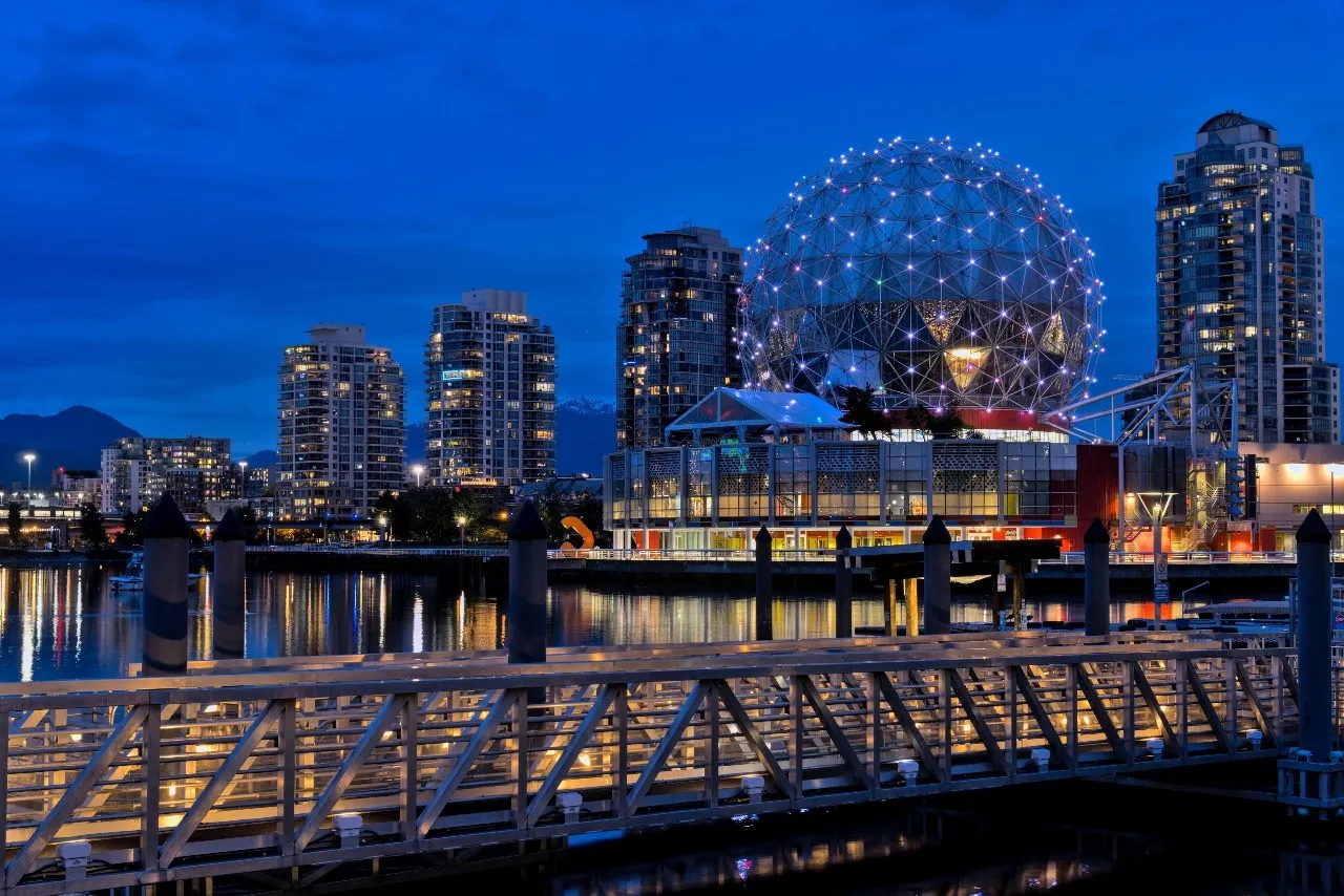 Science World и Olympic City Walk — отличное место как для путешественников, так и для фотографов. Район расположен в центре Ванкувера, Канада, а Олимпийская деревня расположена рядом со зданием Science World. Это прекрасное место, чтобы совершить неторопливую прогулку и осмотреть достопримечательности, изучая новый район. По всей территории расположено множество скульптур и интерактивных дисплеев. Это отличное место, чтобы сфотографировать Олимпийский котел и скульптуры, а также полюбоваться видом на город. Вдоль прогулки также много кафе, магазинов и уличных торговцев. Есть также скамейки, столы и стулья, где можно расслабиться и насладиться пейзажем.