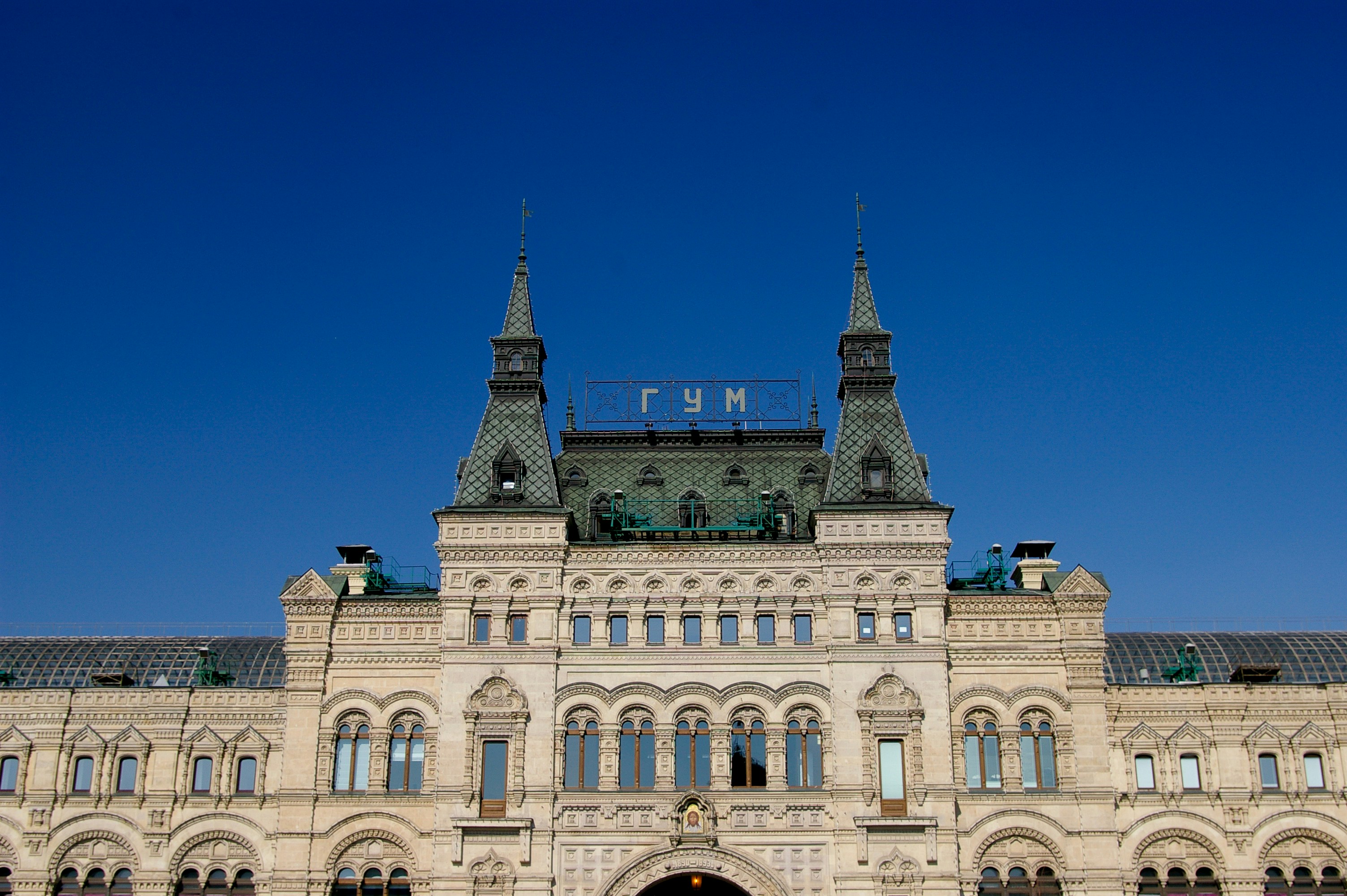 Beläget på Röda torget i centrala Moskva är GUM (Glavny Universalny Magazin) ett storslaget varuhus känt för sin slående arkitektur från 1800-talet och den imponerande glasöverbyggda arkenaden. Byggt med elegant järnramverk och rader av exklusiva boutiquer, caféer och små souvenirstånd, erbjuder det en lyxig shoppingupplevelse med lokala varumärken. Turister kan utforska den utsmyckade interiören, njuta av traditionell rysk glass eller beundra säsongsbetonade dekorationer i de rymliga gallerierna. Dess centrala läge gör det enkelt att kombinera ett besök med andra landmärken som Sankt Basilikakatedralen och Kreml, vilket ger en djupare inblick i Moskvas kulturarv. Glöm inte att ta bilder av den neoklassiska fasaden, speciellt när den pryds med festliga ljus under högtiderna.