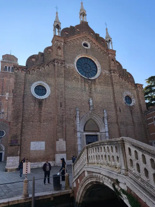 Basilica S. Maria Gloriosa dei Frari förkroppsligar venetiansk gotik och rymmer mästerverk av Tizian, som det berömda "Jungfru Marias himmelsfärd" ovanför huvudalteren. Kyrkan hyser även Tizians grav och skulptören Antonio Canonas monumentala mausoleum. Beundra det himmelsträvande skeppshuset, de intrikata körstallarna och Donatellos trästaty av Johannes Döparen. Praktens enkel yttre döljer ett rikt prytt interiör som understryker de franciskanska rötterna. Belägen i San Polo-distriktet är den en dold pärla men ett måste för konstälskare som söker en äkta inblick i Venedigs religiösa arv.