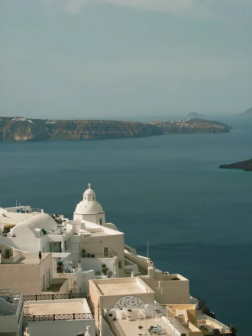 Böljande över de azurblå vattnen i Egeiska havet, Saint Mínas ortodoxa kyrka i Thira är ett slående exempel på cykladisk arkitektur. Dess skinande, vitkalkade väggar och klassiska blå kupol skapar en ikonisk Santorini-bild, särskilt mot den vulkaniska bakgrunden vid calderan. Kyrkans interiör rymmer livfulla ikoner och ömtåliga ljuskronor som speglar grekisk-ortodox konstnärlighet. För bästa utsikter, vandra uppför de slingrande gränderna till kyrkans innergård, där du kan ta hisnande bilder av havet och de intilliggande byarna på klipporna. Nära belägna butiker och kaféer erbjuder charmiga platser att vila på, suga åt sig den lokala kulturen och beundra den tidlösa atmosfären.