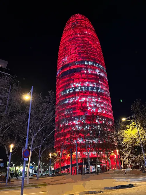 Torre Glòries, tidigare känd som Torre Agbar, är en ikonisk skyskrapa i Barcelona, Spanien, känd för sin unika projektilformade design av arkitekten Jean Nouvel. Med sina 144 meter höjd har detta arkitektoniska underverk en livlig LED-belyst fasad som belyser Barcelonas silhuett med ett färgstarkt sken på natten. Beläget vid korsningen mellan Avinguda Diagonal och Carrer Badajoz markerar den ingången till stadens teknikdistrikt, 22@. Även om byggnaden främst används som kontor kan besökare utforska dess fascinerande exteriör och närliggande sevärdheter, inklusive det livliga området Poble Nou och Mercat dels Encants, en av Barcelonas äldsta marknader. Det är ett måste för arkitekturälskare.