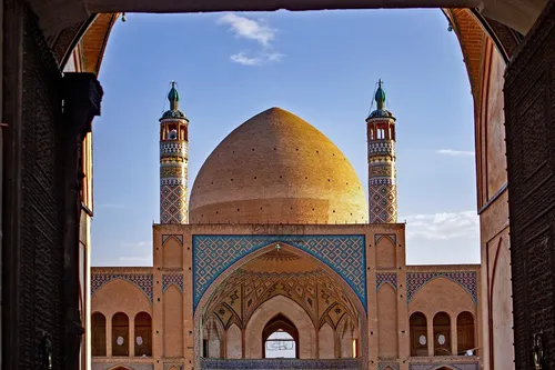 Agha Bozorg Camii, Kashan'da tarihi bir mimari mücevherdir. 19. yüzyılın başlarında inşa edilen cami, zarif kemerleri, detaylı çini işleri ve özenle oyulmuş mihrablarıyla Fars tasarımını sergilemektedir. Caminin geniş avlusu, huzurlu iwanları ve uyumlu simetrisi, düşünceli keşiflere davet ederken, geleneksel İran estetiğine dair bir pencere açmaktadır. Kültürel bir simge olarak, sakin atmosferi ve mimari zarafeti, ziyaretçilere Kashan'ın zengin mirası ve sanatını derinlemesine deneyimleme imkanı sunmakta, tarihi güzellik ve yerel zanaatkârlığı takdir etmek isteyen gezginler için değerli bir durak oluşturmaktadır.