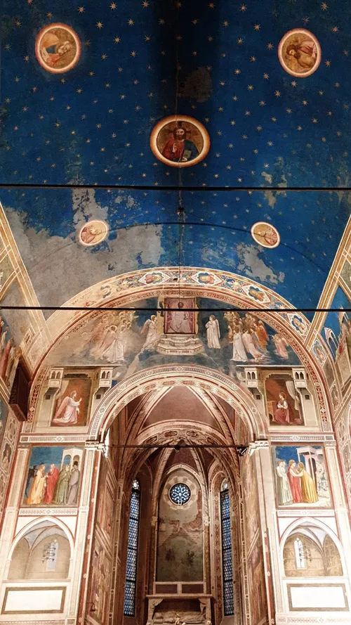 Capella degli Scrovegni, Scrovegni Şapeli olarak da bilinir, İtalya'nın Padova şehrinde bulunan Batı sanatının bir başyapıtıdır. 1303 ve 1305 yılları arasında inşa edilmiş olup, ünlü sanatçı Giotto di Bondone'nin muhteşem freskleriyle tanınır. Bu freskler, Meryem Ana ve İsa'nın yaşamlarını tasvir ederek, Giotto'nun perspektif ve natüralizmdeki öncü kullanımını sergiler; bu, düz Bizans tarzından bir uzaklaşmayı ifade eder. Şapel, sanat tarihinin en önemli anıtlarından biri olarak durur ve İtalyan Rönesansına geçişte kritik bir köprü teşkil eder. Hassas doğası nedeniyle, erişim sınırlıdır ve önceden rezervasyon gerektirir. Ziyaretçilere, bölgenin kültürel mirasını kapsamlı bir şekilde anlamak için bitişikteki Eremitani Müzesi'ni gezmeleri tavsiye edilir.