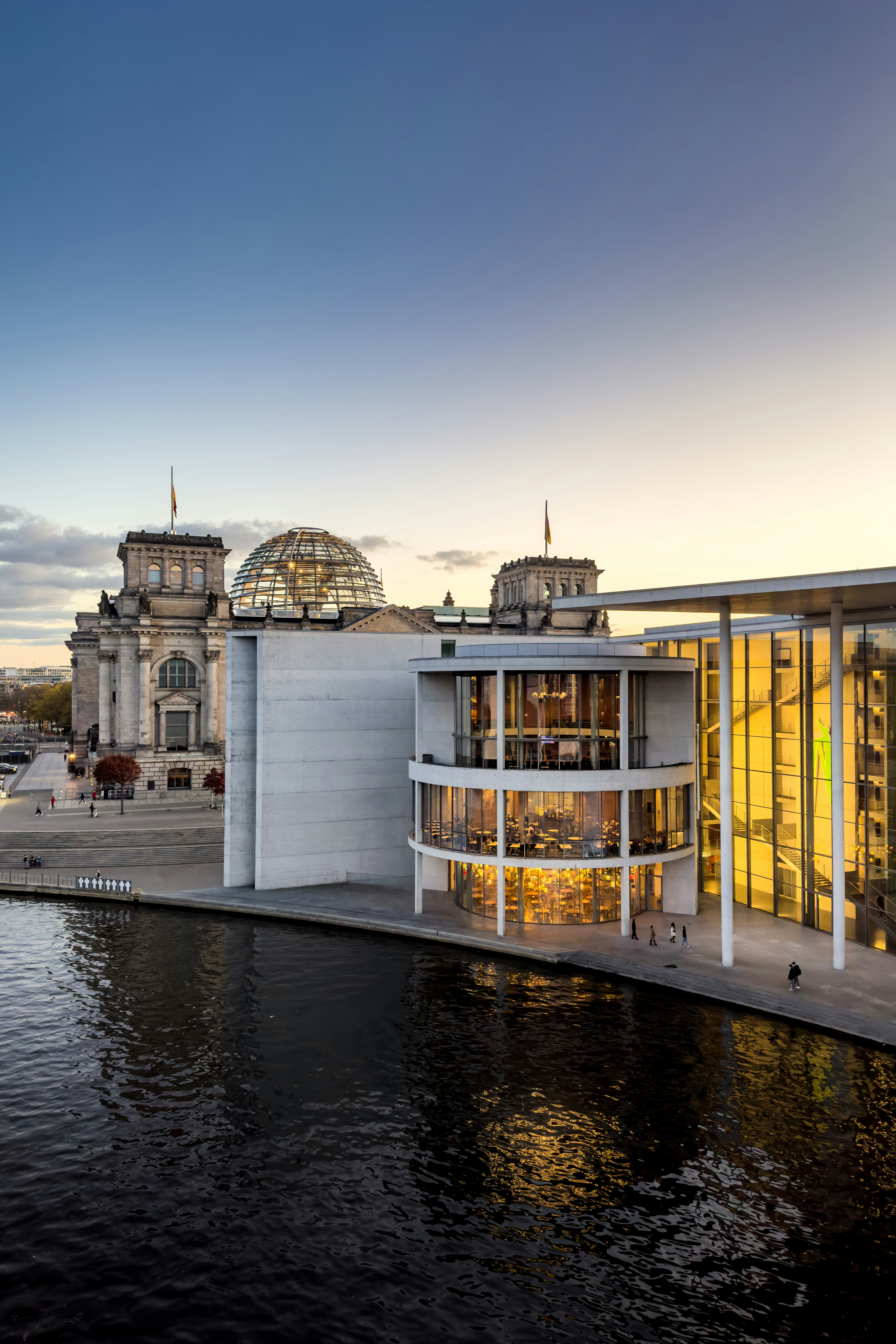 Almanya'daki görkemli Reichstag Binası her gezginin veya fotoğrafçının mutlaka görmesi gereken bir yapıdır. Kentin kuzey tarafında yer alan yapı, bölgedeki diğer tarihi yapılar arasında öne çıkıyor. Etkileyici cam kubbesinden titiz tasarımına kadar bina, 19. yüzyıl Alman mimarisinin çarpıcı bir örneğidir. Ziyaretçiler içeride galeriler ve odalar arasında dolaşarak Almanya'nın çalkantılı geçmişinden kalma çeşitli sanat eserlerine ve eserlere hayranlıkla bakabilirler. Dışarıdaki bahçe tarzı plaza, yerden veya kubbeden fotoğraf çekmek için harika bir ortam sağlıyor. Gerçekten muhteşem bir deneyim için, kubbenin tepesine kadar asansöre binmeyi ve aşağıdaki şehrin muhteşem 360° manzarasını izlemeyi unutmayın.