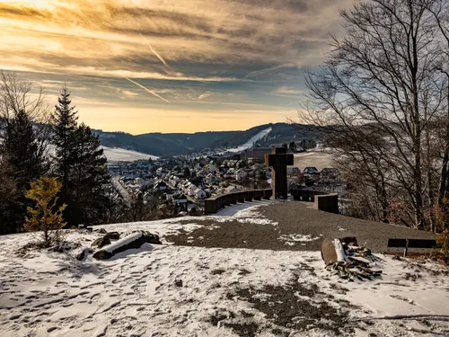 Willingen (Upland), manzaralı yürüyüş, kayak ve canlı festivalleriyle yıl boyu popülerdir. Kasaba üzerinde yükselen Kriegerdenkmal, düşen askerler onuruna dikilmiş bir anıt olup panoramik vadi ve orman manzaraları sunar. Ziyaretçiler teleferikle yakın Ettelsberg’e gidebilir veya aile dostu Lagunen-Erlebnisbad’ı keşfedebilir. Dünya çapındaki kayak atlama rampaları, hareketli gece hayatı ve belirgin parkurlar, macera arayan herkesi çeker. Anıttaki düşünceli atmosferi açık hava etkinlikleriyle harmanlamak, dengeli ve unutulmaz bir deneyim sağlar.
