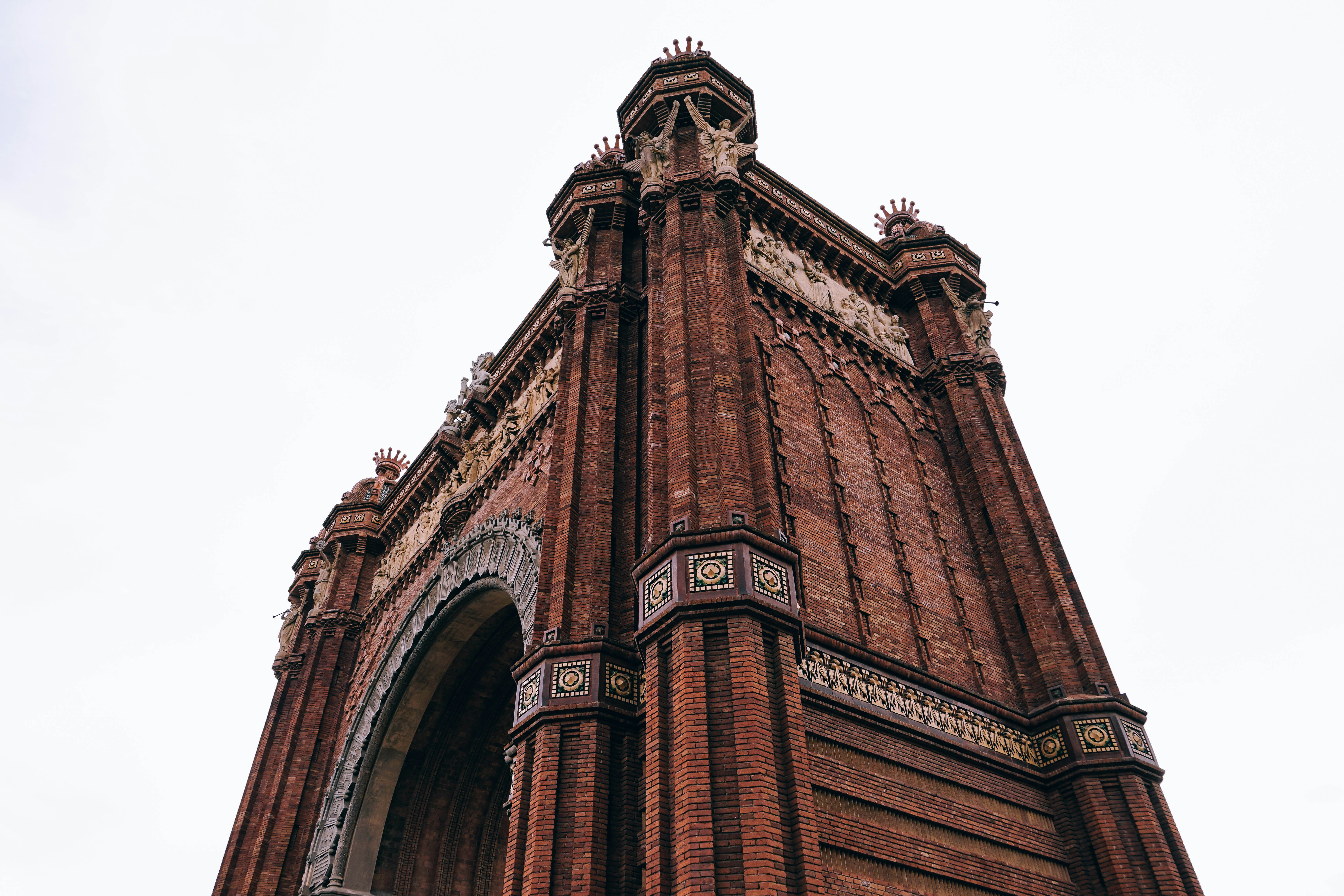 巴塞罗那凯旋门位于西班牙巴塞罗那,是一座标志性建筑,于1888年作为1888年巴塞罗那世界博览会的主要入口而建。它坐落在路易斯·孔帕尼斯大道上,通向城市的主要公共公园——西塔德尔公园。这座经典的红砖拱门灵感来源于巴黎的凯旋门,以其复杂的细节和宏伟的建筑装饰着公园的入口。它的四个方向都装饰有雕刻浮雕、复杂的砖饰和青铜雕像。其墙壁让人联想到法国建筑师弗朗索瓦·朗代尔的风格,并结合了加泰罗尼亚现代主义元素。它的花岗岩基座上有四座青铜雕像,突出了19世纪和20世纪之间商业、工业、航运和农业的重要性和发展。一个有趣的事实是,它是巴塞罗那第一个安装独立电力的公共建筑。