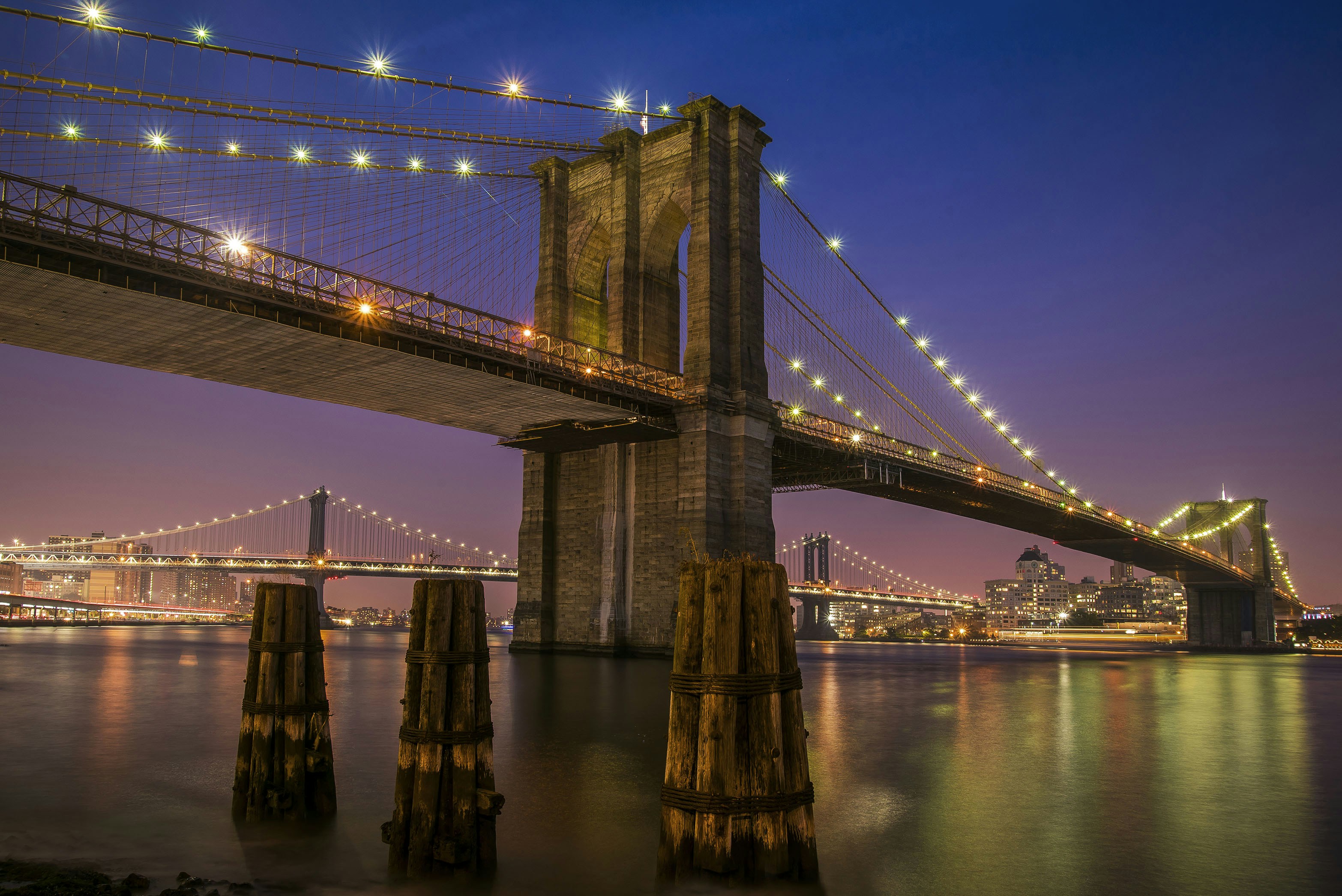 布鲁克林大桥是位于纽约市的标志性地标。大桥于1883年启用,通过跨越东河连接曼哈顿和布鲁克林两个区。它是世界上第一座钢丝悬索桥,如今被广泛视为纽约市的象征。在最高处,布鲁克林大桥距离河面达276.5英尺。游客可以沿着大桥长达1.1英里的步行道漫步,欣赏城市天际线和下方河流的壮丽景色。大桥沿线还设有丰富的历史纪念碑和雕塑。为了充分享受大桥及其周边的美景,游客还可以乘船沿河游览,体验一次难忘的旅程。