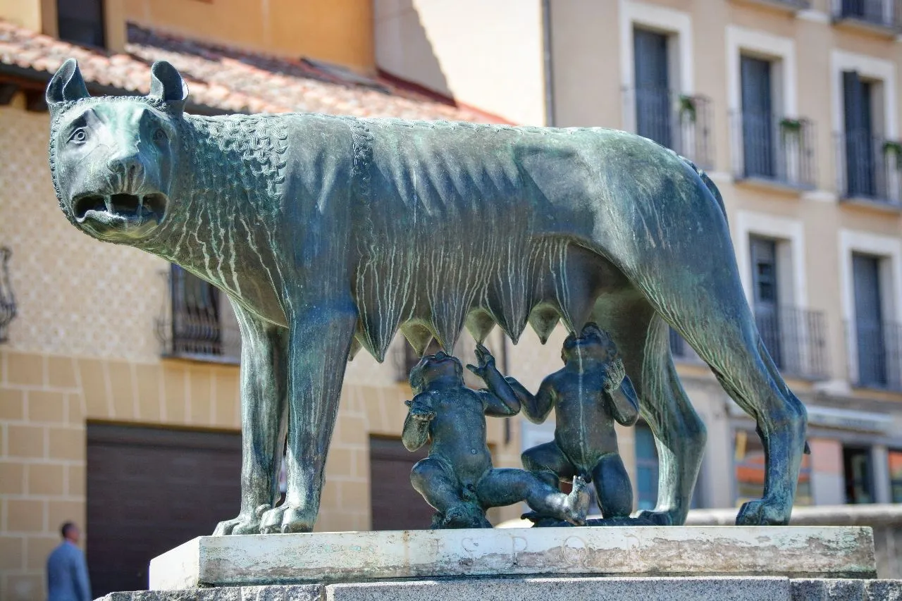 罗马母狼雕像,这座令人印象深刻的石雕矗立在古城塞哥维亚的市政广场。这座8米高的雕塑可以追溯到1784年,由雕塑家弗朗西斯科·古铁雷斯建造,取代了15世纪的一座早期雕塑。该雕像纪念了卡斯蒂利亚国王阿方索六世于1085年重新征服马德里的事件,雕像呈现出一只被认为是塞哥维亚象征的母狮。这座雕像立在一个大型基座上,基座上刻有拉丁语格言“me regem habentem Madrid reddidi”,意思是“我将马德里归还给了它的国王”。尽管长期暴露在自然环境中,罗马母狼雕像的基座仍然保持在极好的状态,是一处壮观的景象。