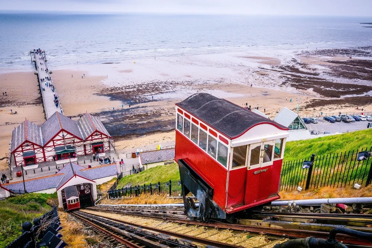 该缆车由两节车厢组成,这两节车厢并行运行,各重约10吨,最多可载50名乘客。车厢通过水力平衡系统实现升降,并由一根横跨悬崖顶部滑轮的缆绳相连。 乘坐缆车不仅能够体验到令人兴奋的感觉,还可欣赏到北海和北约克郡摩尔地区的壮丽景色。这里也是悠闲散步的理想之地,尤其是在低潮时分。游客还可以探访悬崖顶部历史悠久的盐伯恩谷花园,或者在附近的绿地上享受野餐。