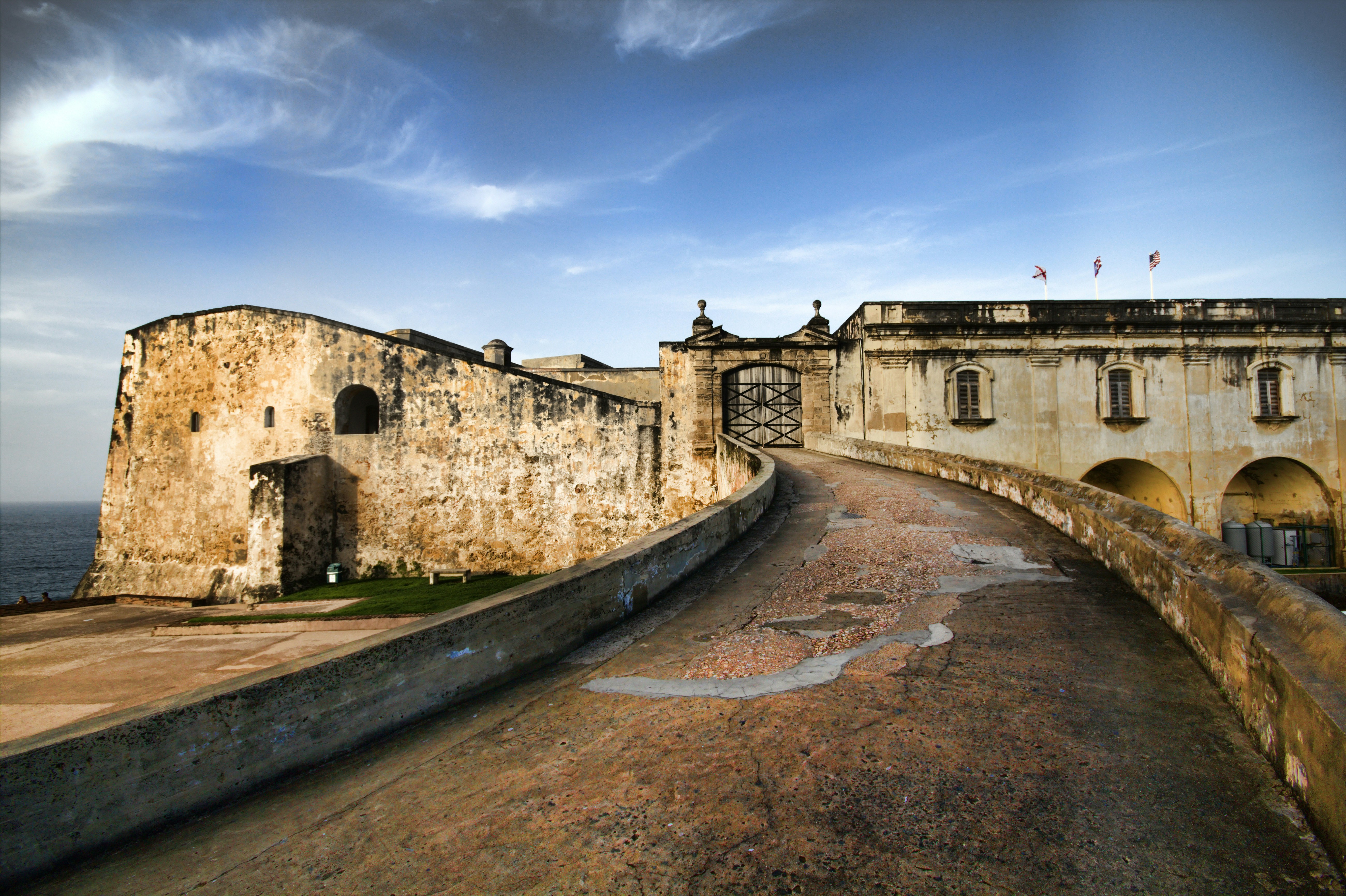 圣克里斯托瓦尔城堡位于波多黎各圣胡安,是一座标志性的堡垒,最初建于 1533 年。这座西班牙军事设施是波多黎各防御加勒比海水域的防线分支。这座城堡由用石灰石建造的大型、蔓延的墙壁组成,围绕着一个内城墙和几个较小的空间。内护城河现已干涸,曾经充满了潮汐闸门带来的海水。这个历史遗迹是旅行者和摄影师必看的景点。其宏伟的建筑,配有防御堡垒,令人印象深刻,尤其是在夜晚照明时。其复杂的石头结构和闲置的大炮是一个非凡的景象,让人想起了它防御的过去。圣克里斯托瓦尔城堡也是多个景点和历史遗迹的所在地,如圣杰罗尼莫城堡、女王公园和圣水晶宫。参观克里斯托瓦尔城堡,探索这个遗址,它仍然保留着几个世纪前的宏伟。