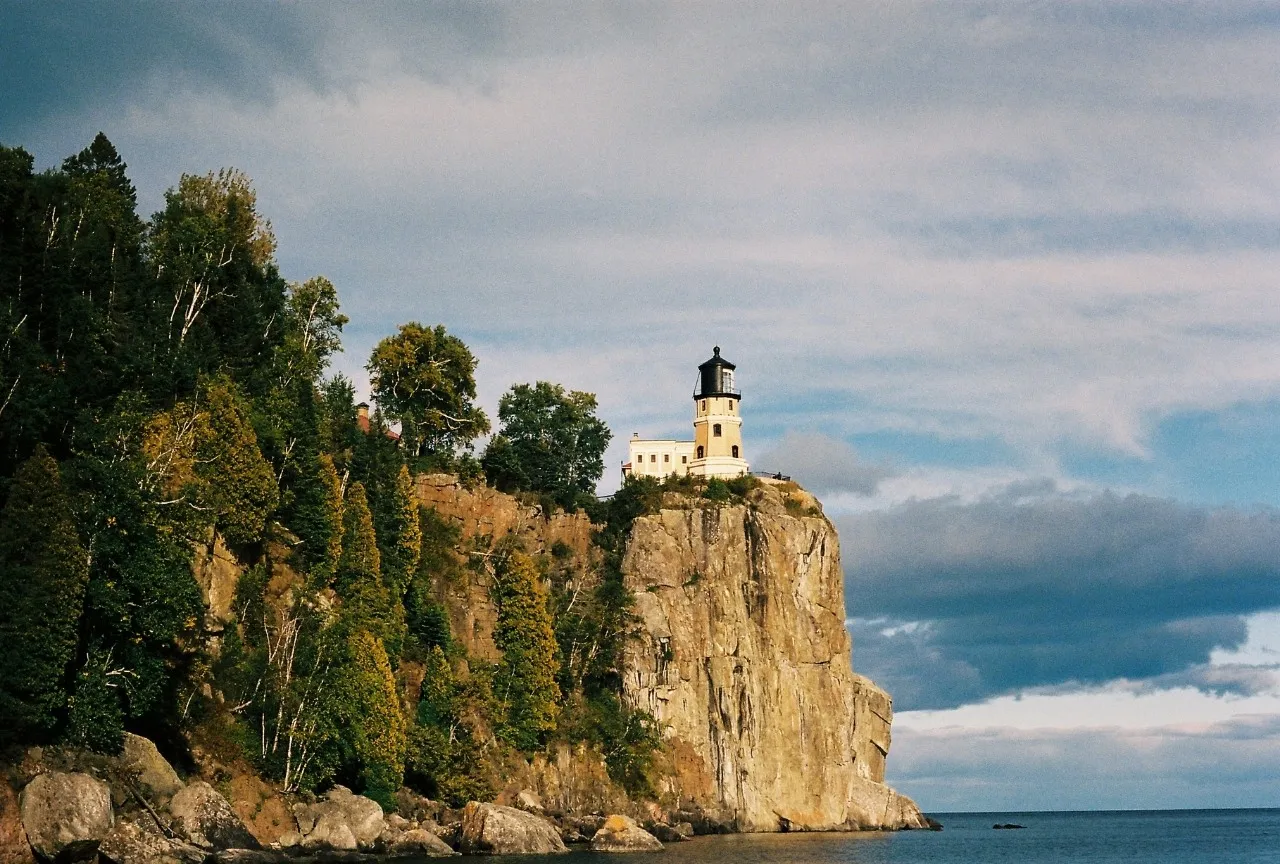 斯普利特岩灯塔是明尼苏达州东北部一座美丽的灯塔,坐落在俯瞰苏必利尔湖的悬崖之上。它建于 1910 年,用于引导船只安全穿越波涛汹涌的水域。灯塔本身是经典红砖灯塔的迷人典范,可供过夜。对于摄影师和旅行者来说,斯普利特岩除了拥有形状独特的八角形灯塔外,还享有湖泊和周围悬崖的壮丽景色。夏季,游客可以探索场地并爬上塔楼,360 度欣赏湖泊和周围岛屿的景色。斯普利特岩拥有悠久的历史和壮丽的风景,是户外探险者必去的目的地。